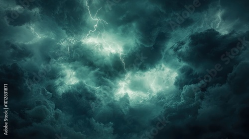 A dramatic sky filled with dark clouds and lightning, evoking a sense of stormy weather.