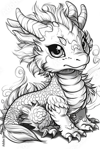 painting, black, dragon, cartoon, white, drawing, vignetting, cute, sitting, chinese, farm, design, ground, animal, tail, illustration, decoration, nature, doodle, reptile, art, isolated, computer, fantasy, mammal, tattoo, clip, graphic, outline, zodiac, signs, mascot, horned, image, ai, colouring, book, children