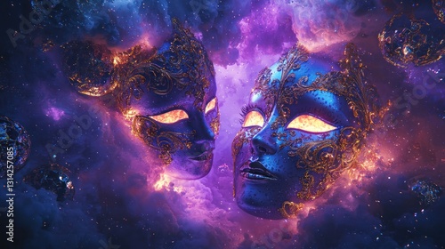 dreamlike, carnival, glowing, mask, surreal, floating, element, magical, aethereal, fantasy, whimsical, enchanting, illuminated, vibrant, mystical, illusion, surrealism, aglow, mysterious, dreamscape, imaginative, captivating, festive, mesmerizing, fantastical, enchanted