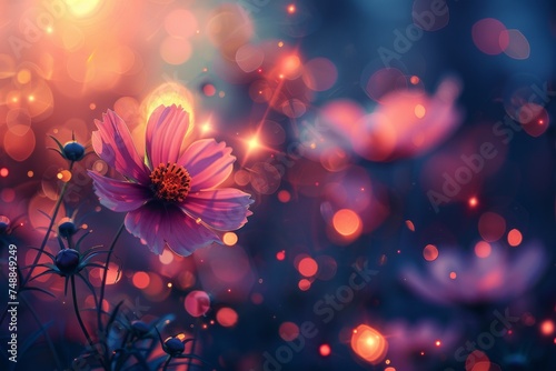 nature, dream, calmness, flower, magic, fantasy, serenity, peaceful, aethereal, imaginative, bokeh, dusky, twilight, flora, enchanting, fairy tale, glowing, shimmering, artistic, dreamlike, delicate, mystical, cosmos, flower petals, solitary, single flower, soft focus, blurred background, vibrant, luminescence, enchantment, radiance, illumination, bloom, botany, pink, red, purple, natural beauty, dazzling, gloaming