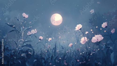 moonlit, garden, watercolor, blossom, pastel, pink, blue, purple, glowing, night, dreamy, romantic, magical, serene, aethereal, glow, atmosphere, editorial, branding, evening, event, photo, soft, gentle, feminine, graceful, peaceful, calm, elegant, enchanting, tranquil, delicate, exclusive, whimsical, beauty, nature, high-end, luxurious, creative, chic