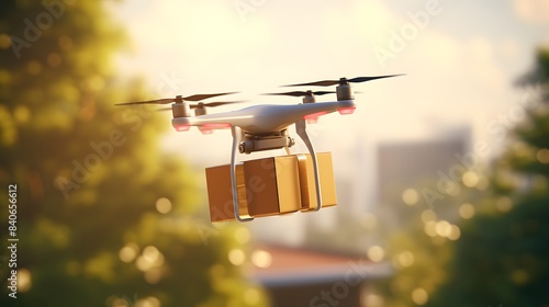 A drone delivering a package with GPS and IoT integration, futuristic, efficient, fast, advanced, reliable