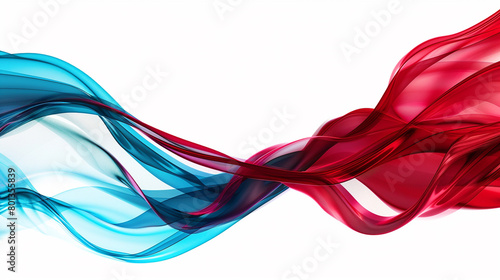 A dynamic wave of ruby red and azure blue, elegantly curling and set against a pure white backdrop. The image resembles a high-definition photo.