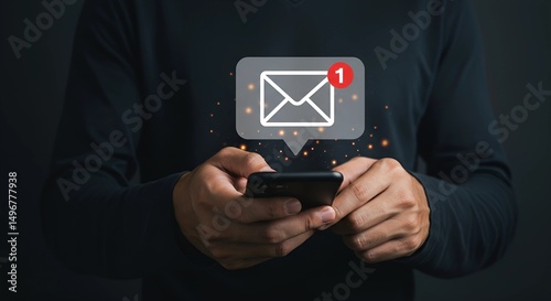 A Email Notification Alert on Smartphone Man Checking New Message on Mobile Device