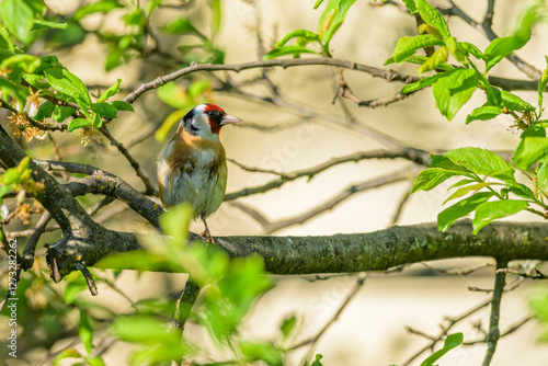animal kingdom, aves, chordata, european, goldfinch, finch, passeriformes, animal, animal, beak, beauty, bird, tree branch, closeup, collecting, colours, cute, detail, europa, fauna, feather, garden, gold, habitat, metal, natural, nature, outdoors, park, plant, red, single, small, songbird, spring, sunny, vegetation, weather, white, wild, wildlife, yellow, bush