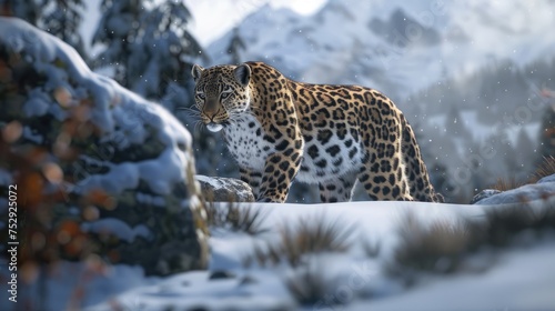 cinematic, realistic, capture, photograph, setting, wildlife, predator, animal, wilderness, nature, fur, mammal, endangered species, ancient, ice age, european, leopard