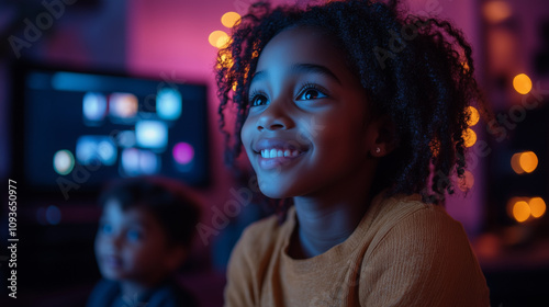 A family enjoying a secure online movie streaming service, with security icons subtly integrated into the interface