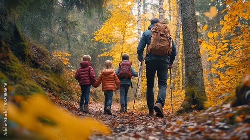 family, forest, hiking, autumn, fall, nature, outdoors, adventure, travel, wood, tree, leaf, yellow, red, green, backpack, children, children, children, happy, fun, enjoy, explore, walk, trail, path, scenic, landscape, season, weather, cold, cool, fresh, active, healthy, lifestyle, togetherness