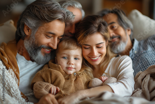 lifestyle, children, father, horizontal, hugging, husband, together, smiling, male, person, son, mother, love, daughter, family, sofa, happy, female, couch, man, home, portrait, baby, sitting, woman, girl, house, childhood, cheerful, including