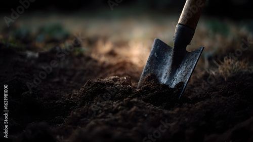 A farmer uses a spade to dig a planting hole in the soil long title A farmer is shown using a traditional spade to carefully dig a hole in the