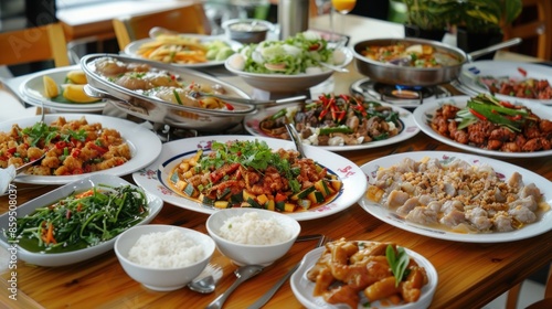 A Feast of Asian Cuisine: A Table Spread with Delicious Dishes