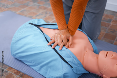 A female demonstrates CPR using dummy during life-saving training sessions,equipping participants with essential emergency skills ensure safety, provide critical care,respond effectively emergencies