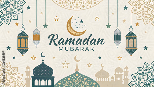 ramadan, islamic, greeting, card, design, illustration, festive, religious, culture, traditional, vector, decorative, star, crescent, moon, lantern, mosque, eid, muslim, geometric, graphic, background, banner, arabic, holiday, religious holiday