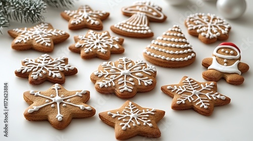 A festive assortment of decorated gingerbread cookies for the holidays.