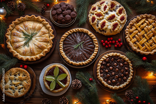 christmas, holiday, table, dessert, pie, festive, decoration, greenery, seasonal, sweet, winter, celebration, family, gathering, food, baked, good, spirit, display, cosy, traditional, treat, entertainment, culinary, favor, platter, pine cone, light, red, berry, cheer, party, joy, rustic, homemade, cheerful, gathering, festivity, delicious, dessert