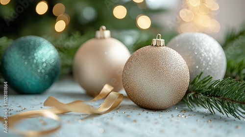 ornament, tree, green, gold, silver, glistering, sparkle, ribbon, bokeh, holiday, decor, festive, shiny, christmas, tree branch, light, decoration, beautiful, colourful, round, winter, celebration, glamour, traditional, elegant, style, background, vintage, cosy, joyful, nature, scene, cheerful, seasonal, warmth, texture, art, composition, cheer, happiness, christmas tree, holiday season