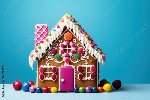A Festive Gingerbread House with Vibrant Candy Decorations