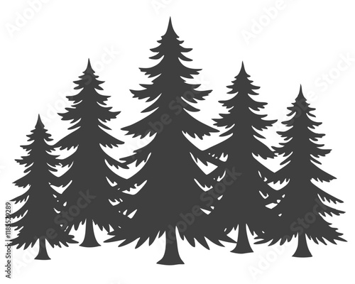 A festive winter forest with snow-covered pine and fir trees, perfect for a Christmas card or holiday decoration design