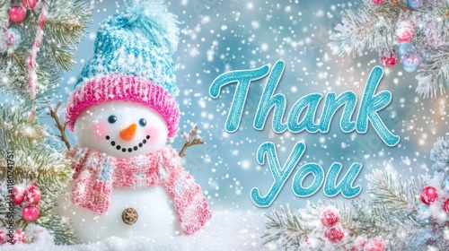 thank you, thank, you, winter, snowman, snowy, scene, decoration, festive, gratitude, celebration, cheerful, banner, seasonal, holiday, kindness, appreciation, joy, cute, turquoise, pink, snowflake, tree, wonderland, warmth, charme, message, art, creativity, design, decor, lovely, colours, bright, snow, friendly, character, family, children, playful, happiness, greeting, cosy, fun