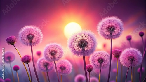 blowball, sunset, field, flower, pink, purple, yellow, light, seed, nature, delicate, bloom, blossom, fluffy, soft, summer, evening, sky, horizon, background, beauty, vibrant, abstract