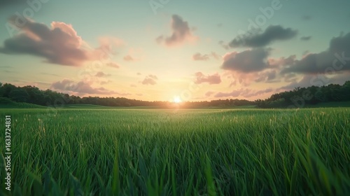 A Field of Green Grass at Sunset