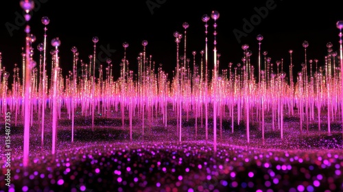 abstract, glowing, light, particle, sphere, stem, black, purple, pink, field, digital, bright, tall, dark, futuristic, modern, energy, bokeh, shimmer, animation, sparkle, surface, landscape, pattern, design, technology, background, illusion, fantasy, vibrant, creative, space, depth, effect, artistic, illuminated, structure, environment, wave, distant, rising, growing, dotted, graphic