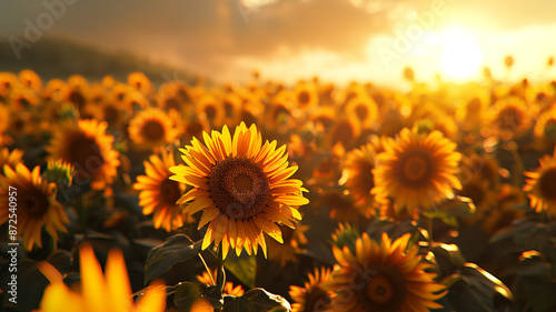 sunflower, field, sunrise, yellow, flower petals, bright, glowing, early, light, warmth, optimism, nature, morning, floral, bloom, beauty, scenic, landscape, garden, natural, vibrant, fresh, botany, summer, sunlight, countryside, environment, peaceful, serene, wildflower, stunning, lush, picturesque, flora, seasonal, blooming, radiant, growth, palmy, gold, dawn, horizon, captivating, greenery, blossom, relaxation, landscaped, flowerbed