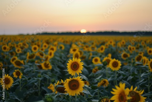 A Field of Sunflowers With the Sun Setting in the Background