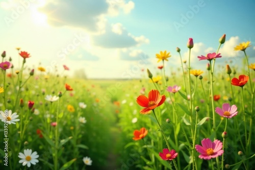 A field of tall grass with wildflowers swaying in the wind, botanical, wildflower,