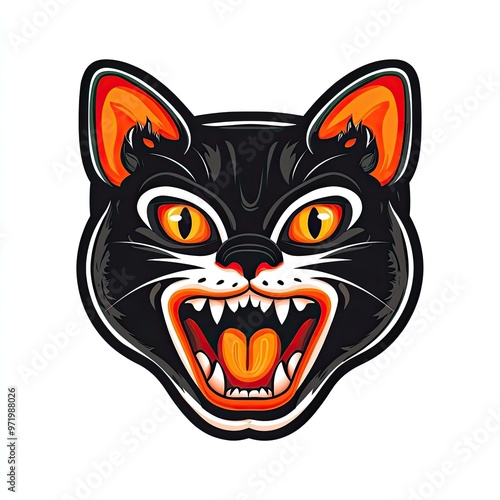 A fierce black cat illustration featuring sharp teeth, glowing eyes, and vibrant colors. Perfect for Halloween or spooky themes.