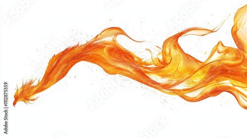 A fire dragon flying through the air on a white background