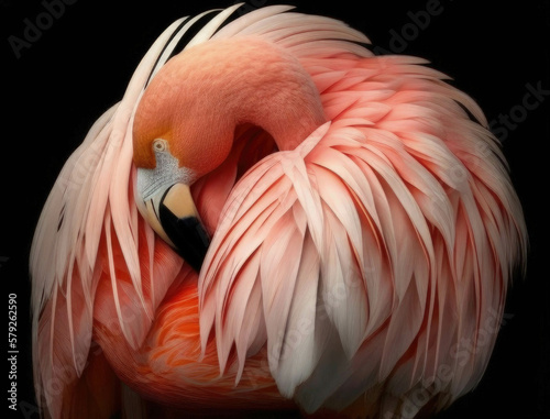 A flamboyant flamingo preening its feathers. Cute creature. AI generation.