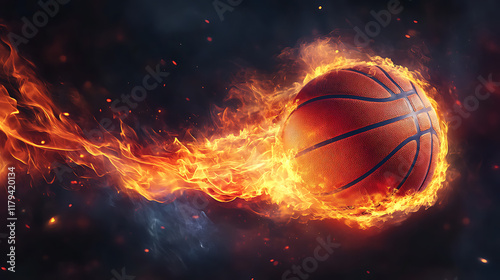 A flaming basketball in motion, symbolizing energy and excitement in sports.