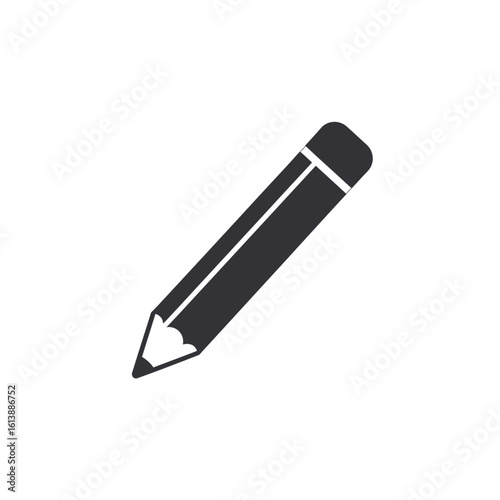 A flat black pencil icon with a sharpened tip and eraser, isolated on a white background.