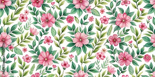 a floral pattern with pink flowers and green leave