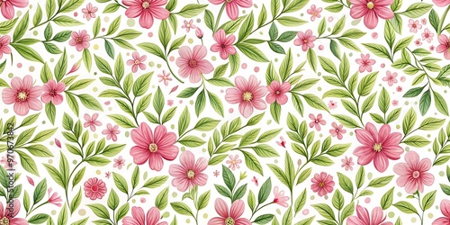 a floral pattern with pink flowers and green leave