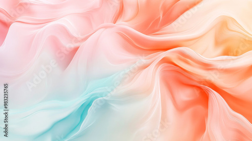 A fluid, colorful background with soft transitions between pale orange, soft turquoise, and light pink, creating a soothing and abstract design.