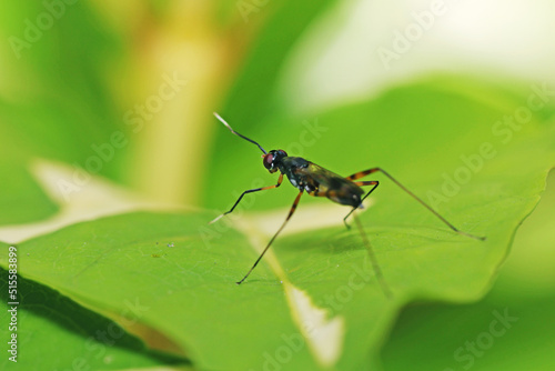 A fly insect on green leaf
