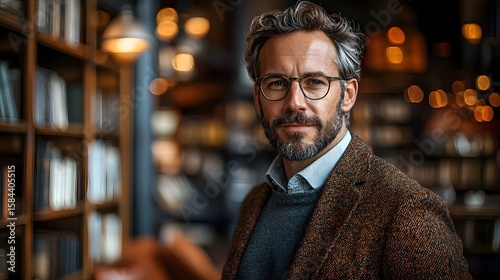 businessman, portrait, serious, confident, strategic, virtual, leadership, man, goggles, beard, sweater, bookshelf, indoor, looking, professional, thoughtful, mature, contemplative, intelligent, sharpened, executive, academic, intellectual, education, work, career, office, technology, communication, strategy, planning, management, expertise, life events, cognition, research, analysis, innovation, success, achievement, ambition, determination, perseverance, growth, development, influence, impact