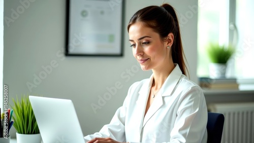 woman, laptop, office, work, professional, daytime, modern, desk, sharpened, typing, business, environment, plant, indoor, technology, sitting, attire, concentration, smiling, bright, personal, workspace, productivity, career, setting, cheerful, green, organisation, light, casual attire, writing, digital, communication, entrepreneur, education, female, manager, connectivity, task, simplicity, lifestyle, home
