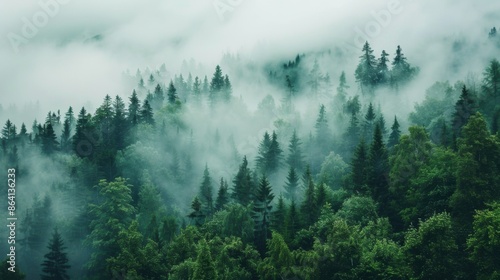 forest, evergreen, tree, fog, morning, aerial view, landscape, nature, scenery, wildlife, misty, timberland, wood, greenery, dense, mountain, mountain, hill, sky, cloud, weather, calm, serene, peaceful, quiet, tranquil, relaxation, meditation, calmness, breathtaking