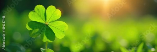 A four-leaf clover basks in sunlight, symbolizing unexpected fortune and serendipitous blessings, a divine gift of good luck , green, destiny