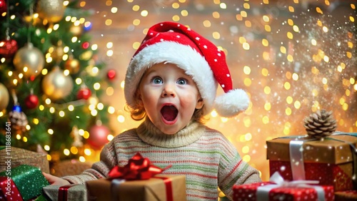 christmas, children, santa, baby, hat, holiday, christmas, tree, gift, celebration, boy, children, winter, claus, decoration, childhood, fun, happiness, santa, new year, smiling, red, adorable, season, new