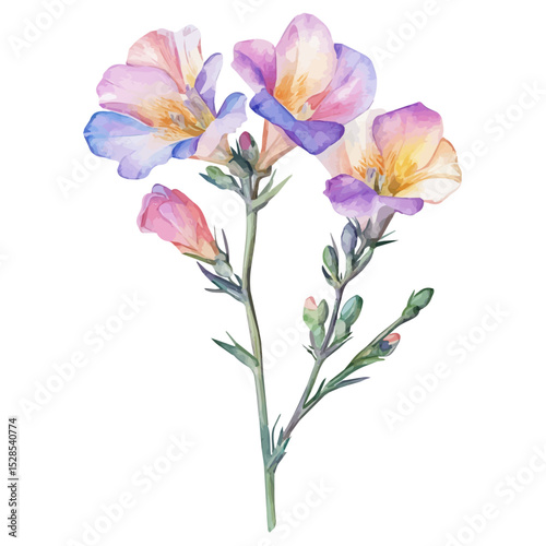 A Freesia Stem, watercolor painting vector, high quality, isolated on a white background.