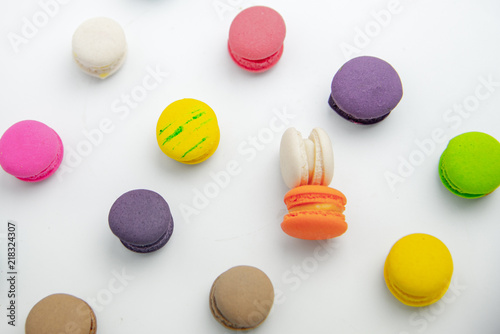 A french sweet delicacy, macaroons variety closeup.macaroon colourful texture.