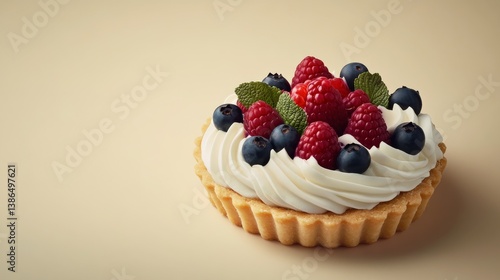 fresh, berry, tart, almond, crust, whipped, cream, light, sweetness, elegance, pastry, shop, adorned, variety, berry, modern, minimalist