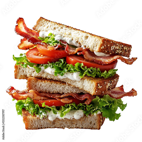 A Fresh BLT Sandwich with Crispy Bacon Lettuce Tomato Isolated on Transparent Background