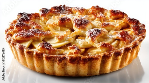 a freshly baked apple pie with cinnamon on a white isolated background, comforting and delicious design