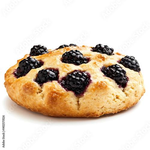 freshly, baked, blackberry, scone, gold, crisp, crust, delicate, crumb, dark, juicy, berry, pocket, isolated, white, background, art, style, flat, photo, front, view, rustic, texture, deep, purple, fruit, accent, resolution, additional, condiment, side