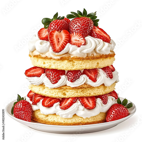 freshly, baked, strawberry, shortcake, whipped, cream, soft, cake, layer, fresh, strawberry, isolated, white, background, art, style, flat, photo, front, view, fluffy, vibrant, fruit, resolution, additional, condiment, side